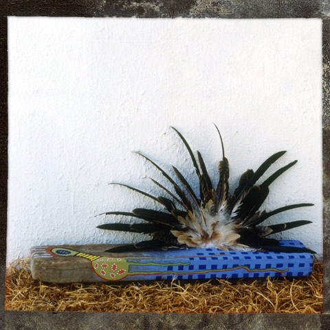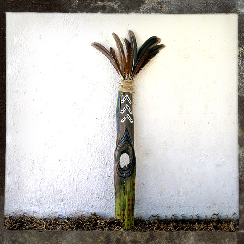 Medium - Jarrah / Wedged-tail Eagle feathers / acrylic paint
